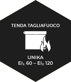 La tenda tagliafuoco modello UNIKA EI60, EI 120 è stata testata per garantire l’integrità a 1000 °C (grado E) e una tenuta all’isolamento termico (grado I). La tenuta all’isolamento termico del lato opposto al fuoco, garantisce una temperatura media massima di 140 °C.