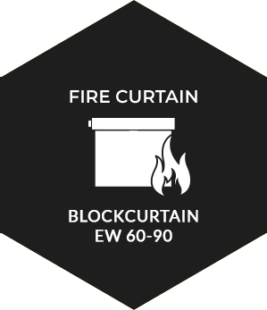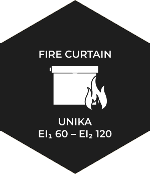 UNIKA EI 60, EI 120 model fire curtain has been tested to ensure integrity at 1000 °C (grade E) and a seal to thermal insulation (grade I). The tightness of the insulation thermal insulation of the side opposite the fire, guarantees a maximum average temperature of 140 °C.